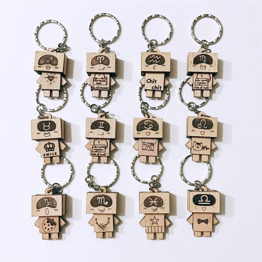 Móc khóa robot cung hoàng đạo người gỗ độc đáo free ship